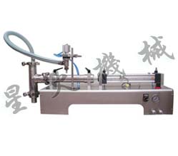 該機(jī)為半自動(dòng)活塞式液體灌裝機(jī)。